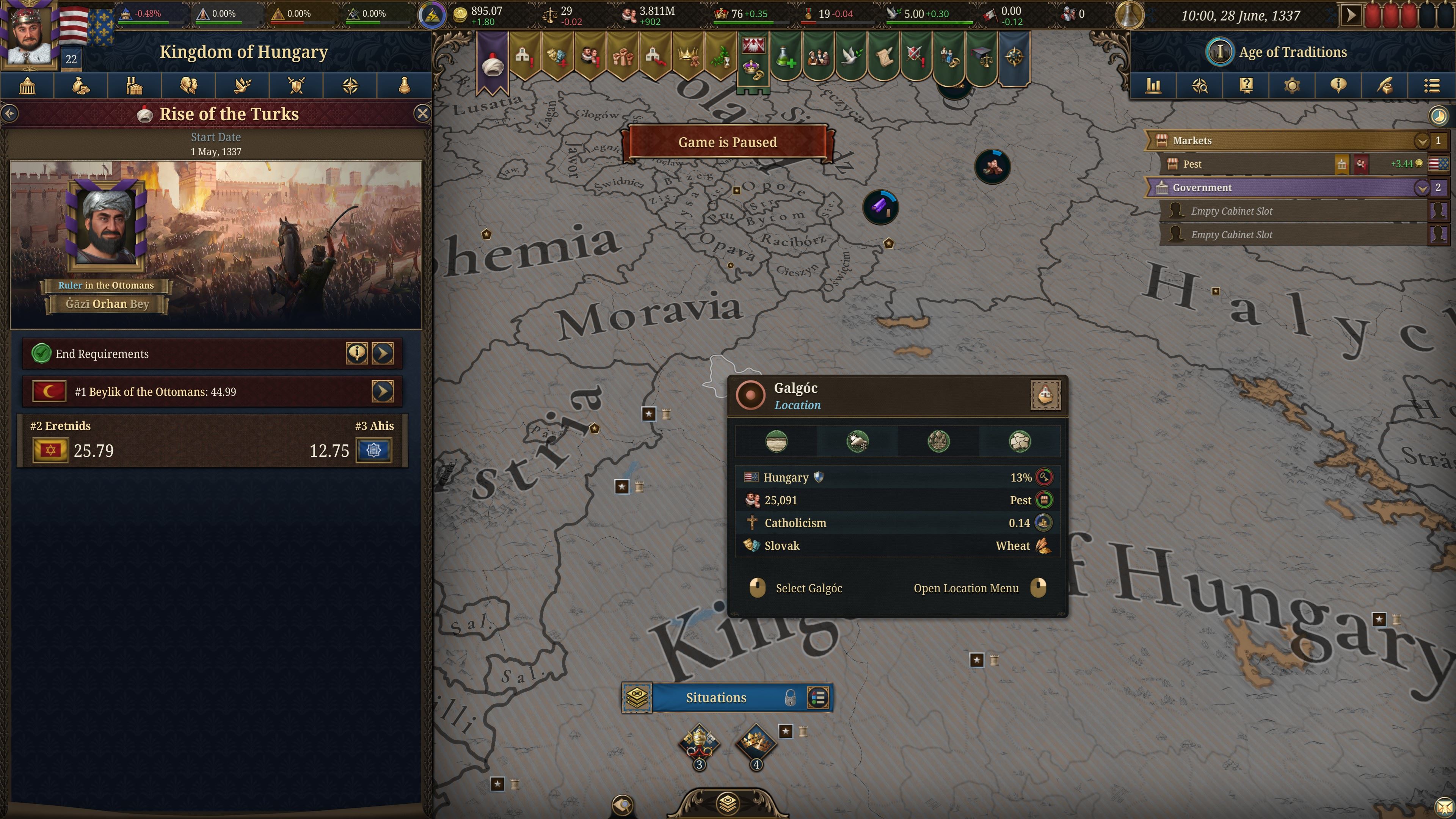 Už na začiatku by bolo dobré ujasniť, že som fanúšikom herných stratégií, či už klasických, staviteľských, alebo ťahových. Avšak štýlu grand stratégii ako takých som sa začal venovať len nedávno. Tento titul nie je len na jeden večer a hráč tu potrebuje investovať kopec času, aby sa naučil všetky princípy hry, ktorých je tu naozaj neúrekom. Nie je to hra o víťazstve - je to hra o pochopení. O pochopení sveta, ktorý sa formuje pod vašimi rukami, o pochopení moci, ktorá je pominuteľná a o pochopení, že aj to najmenšie rozhodnutie môže mať dôsledky v celých storočiach. Hra je neskutočne komplexná a priznám sa, že som sledoval nielen jeden video tutoriál, aby som sa do toho dostal.