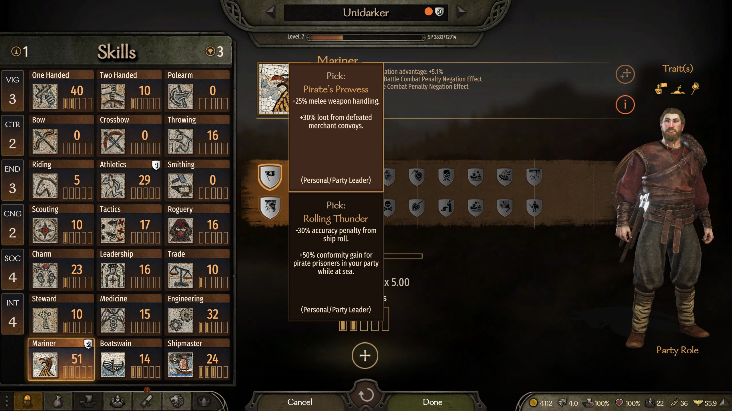 Treba však myslieť na to, že podobne ako vojaci, ktorí vás sprevádzajú na pevnine, potrebujú jesť aj námorníci, ktorým velíte. Takže mať dostatočné zásoby potravín je dôležité, obzvlášť pri dlhších plavbách. S námornou zložkou sú spojené aj nové schopnosti, ktoré si môžete osvojiť a zveľaďovať, ako aj príslušné perky. Ak budete častejšie brázdiť moria, body sa oplatí investovať hlavne do zameraní, ako je námorník, lodník, námorný kapitán, ale aj inžinier. Pomôže vám to zrýchliť plavbu či bojové vlastnosti vašich lodí, ako aj zefektívniť výrobu a upgradovanie plavidiel.