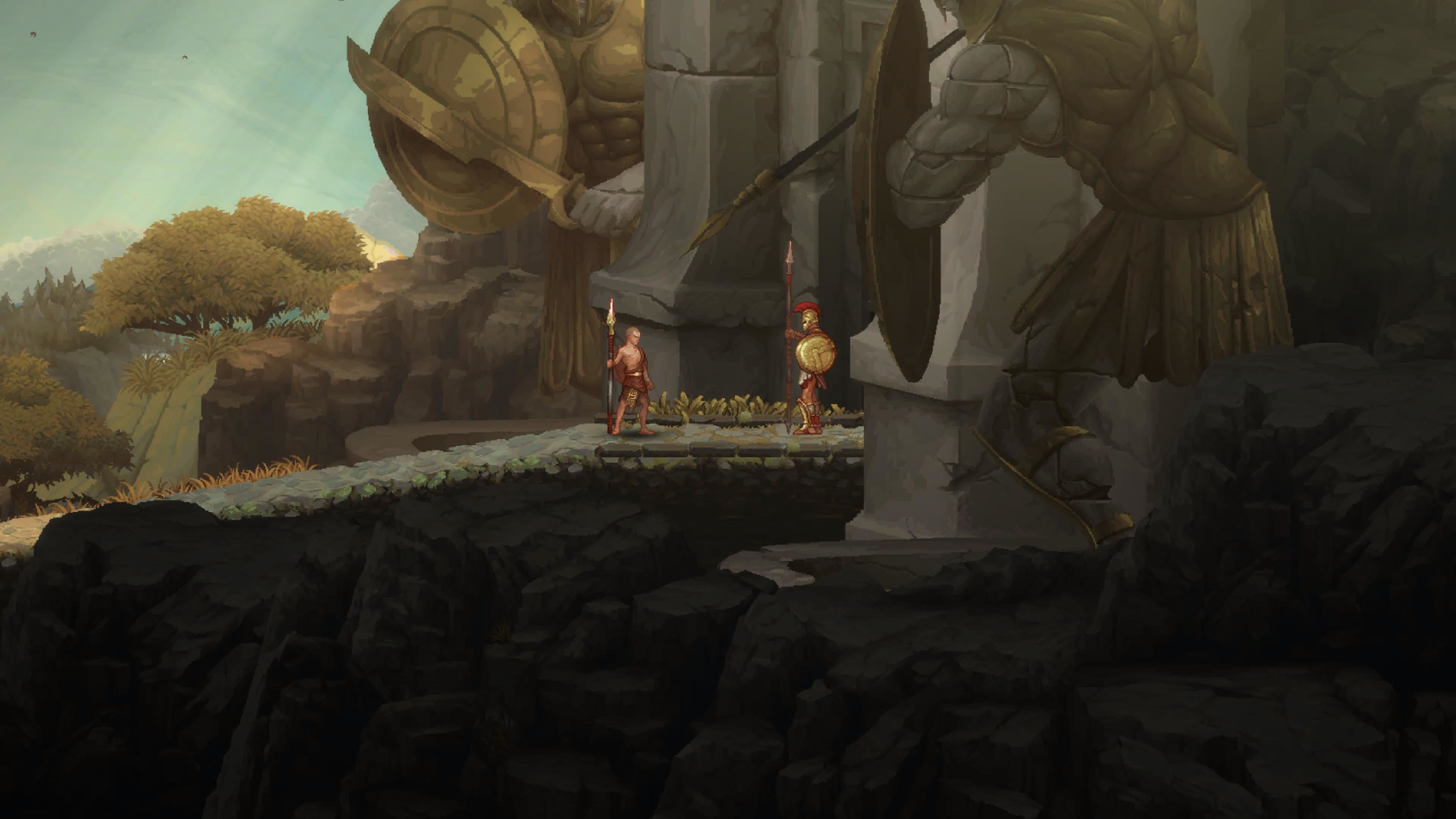 Medzi dvomi bratmi je neustále trenie, ktoré ukazuje ich prístup k tréningu a dodržiavaniu pravidiel. Ale je to spoločné putovanie, takže sú často spolu, rozprávajú sa pri ohni (kde môžete ukladať pozíciu a vylepšovať postavy) a spoločne rastú. Dokonca vám Deimos tu a tam pomôže v boji s bossom. Aj keď je to taká pomoc, aby vám niekto robil spoločnosť na obrazovke, reálne veľa nespraví. Ale dáva to hre trochu iný rozmer, ktorý ju odlišuje napríklad od tých uvedených vyššie. Zo Sparty sa vydávate čoraz ďalej, ale aj tak sa tam pravidelne budete vracať. Jednak kvôli príbehu, ale tiež kvôli vylepšeniam zbraní či výrobe nových súčastí u kováča.