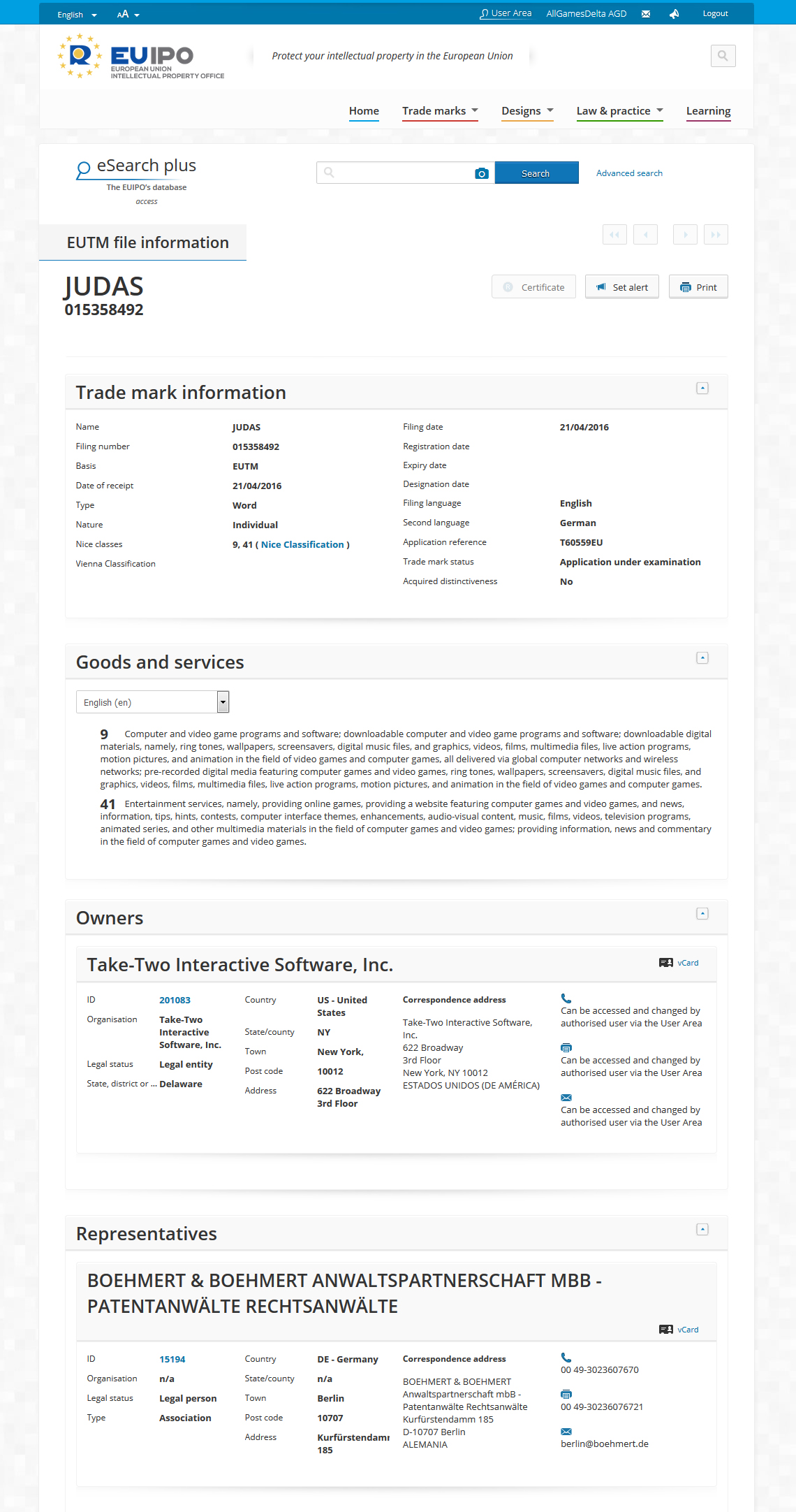 Vydavateľ Take Two si zaregistroval novú značku Judas. Tú zaradili do kategórie hier a zábavných služieb. Snáď nám čoskoro prezradia, čo by to mohlo byť.