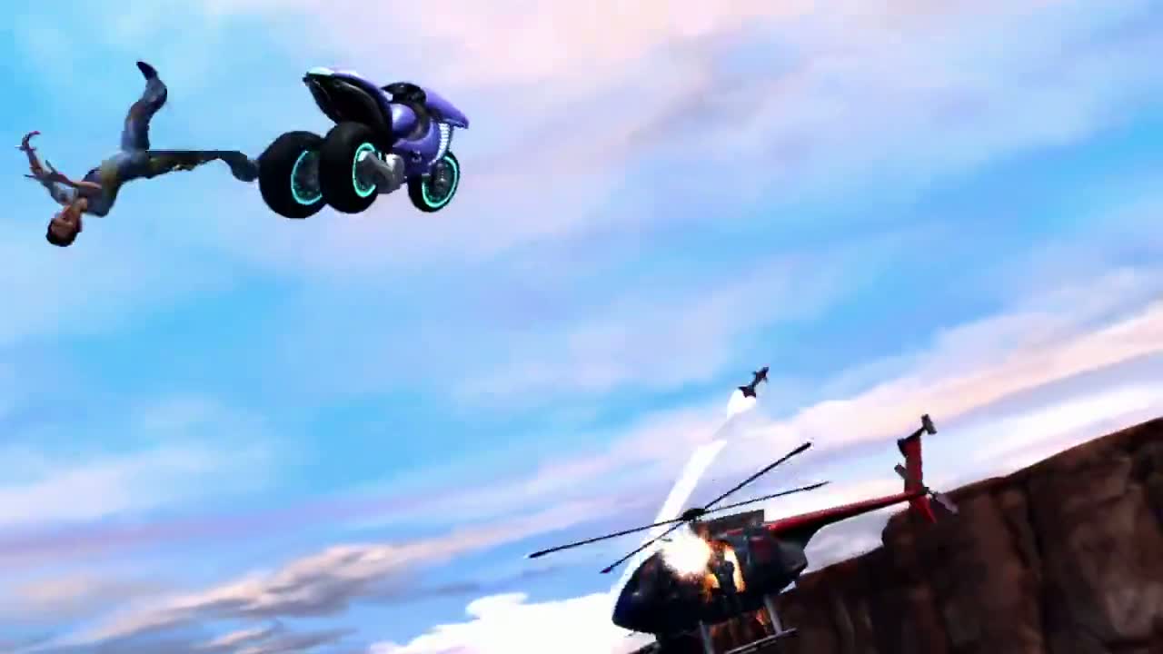 Ukážka zo zvláštnej motorkovej Xbox Live hry, v ktorej motorka ťahá jazdca po zemi.